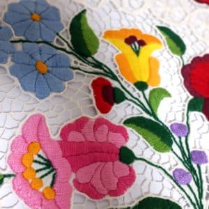 ハンガリーカロチャ刺繡は、19世紀後半ハンガリー南部のカロチャ地方で生まれた伝統的な刺繍技術であり、その鮮やかな色彩と華やかなデザインで広くしられています。