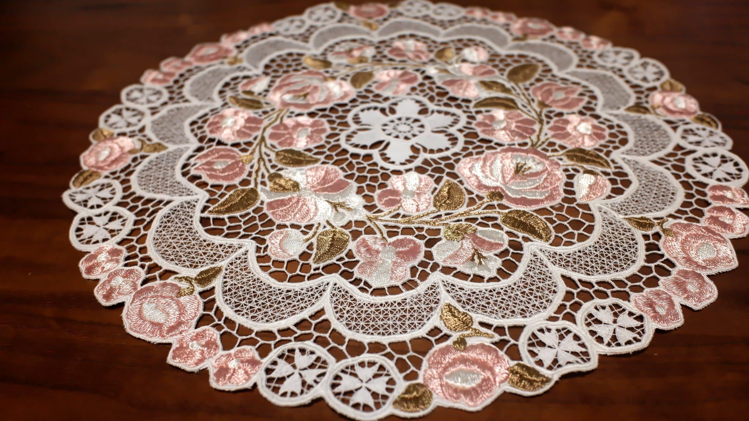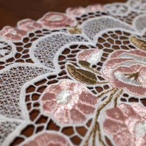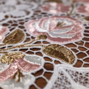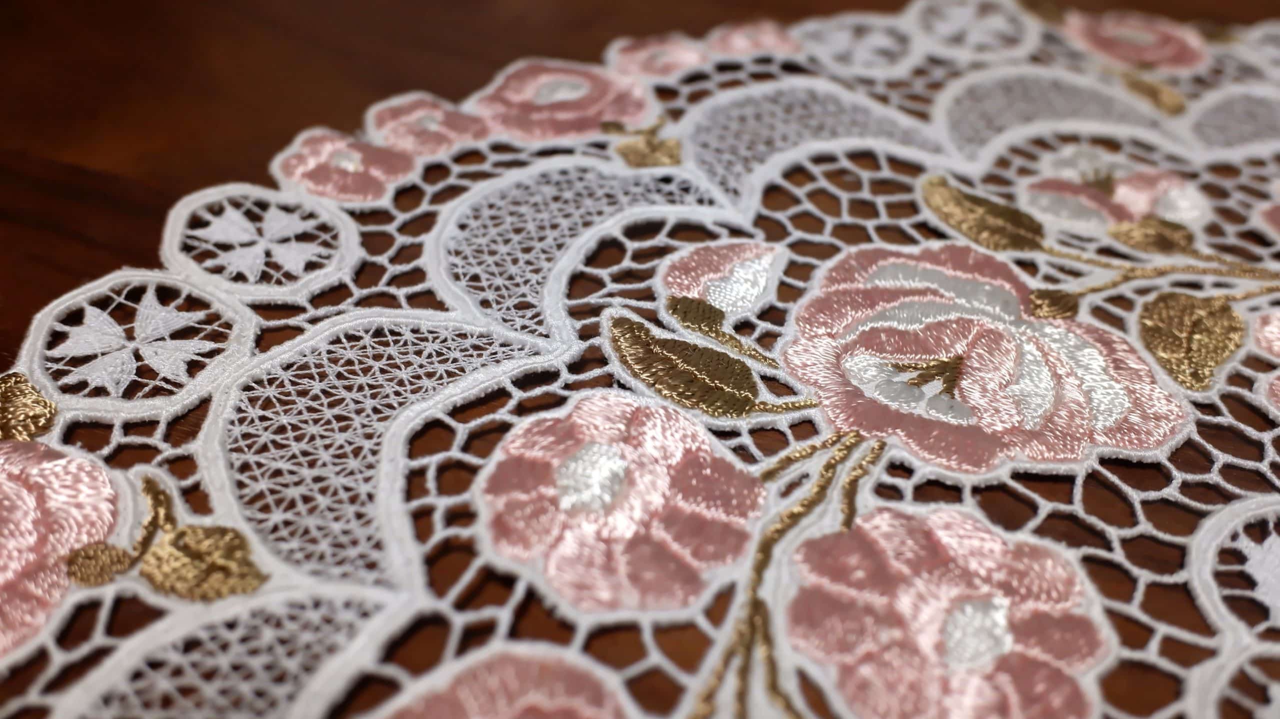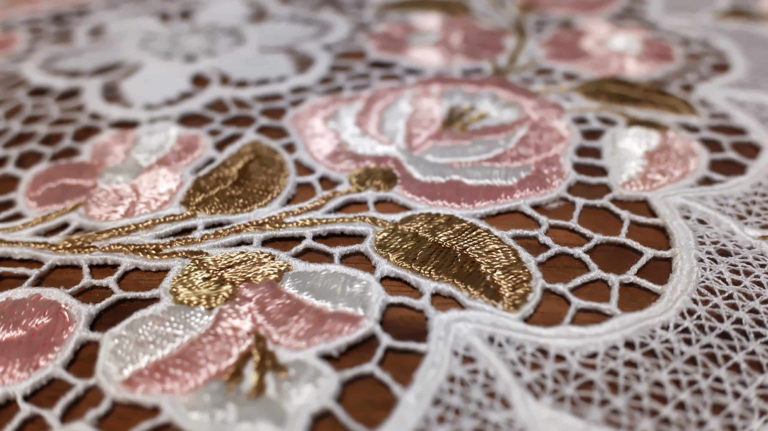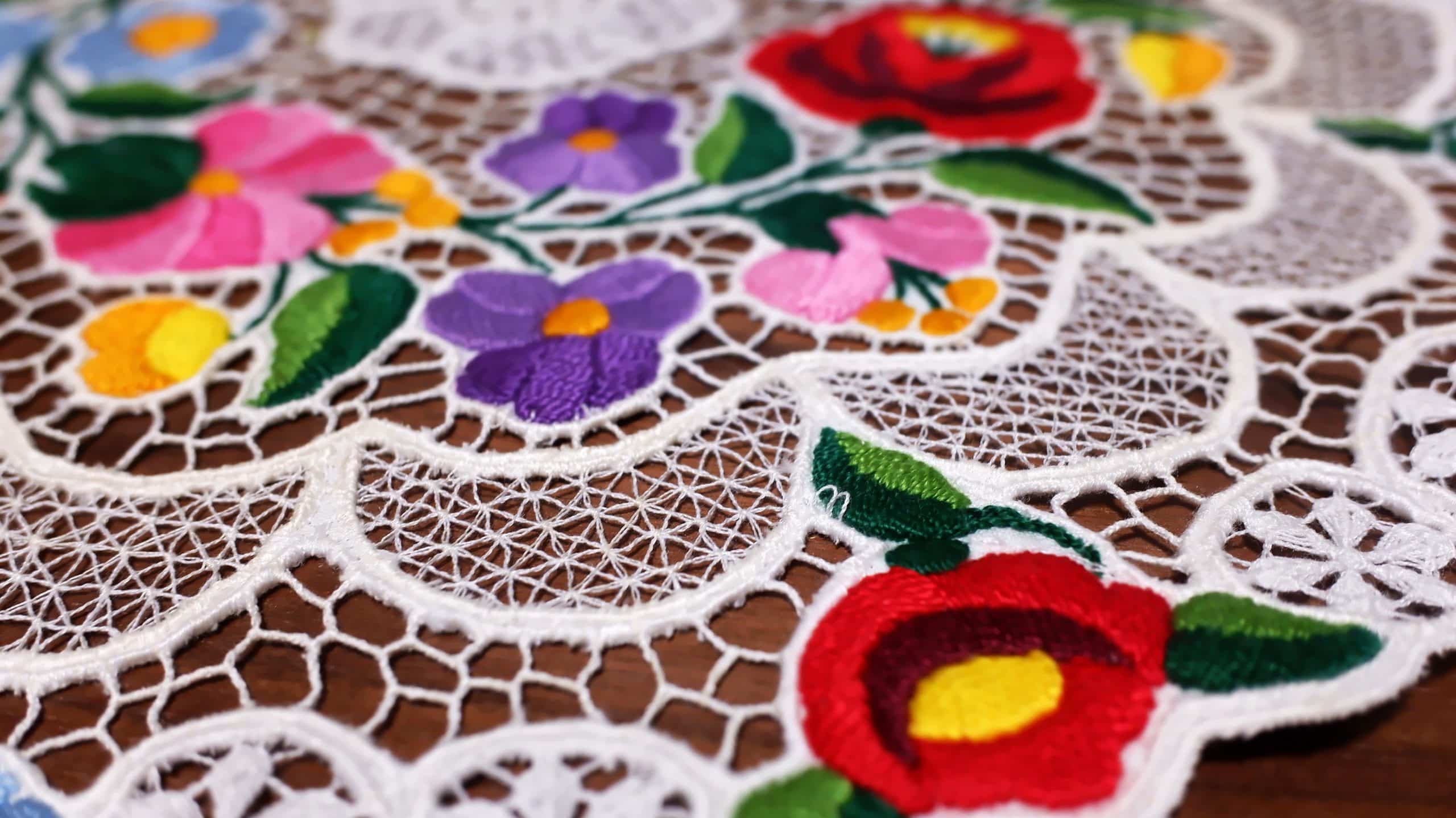 カロチャ刺繡の技法は手作業で、一針一針丹念に縫い進めることが重要とされています。基本的なステッチ技術は、サテンステッチやチェーンステッチが用いられ、布全体にわたって、繊細な膜様が広がります。