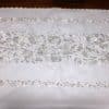 カロチャ刺繡の最も特徴的な要素は、白い布地に刺されたカラフルな花々や葉のチモーフです。ばら、チューリップ、ポピー、ひまわりなどの植物がデザインに使われ、赤、青、緑、黄色、紫といった鮮やかな色彩が組み合わさることで、華やかで生命力あふれる印象を与えます。