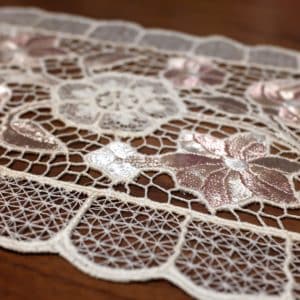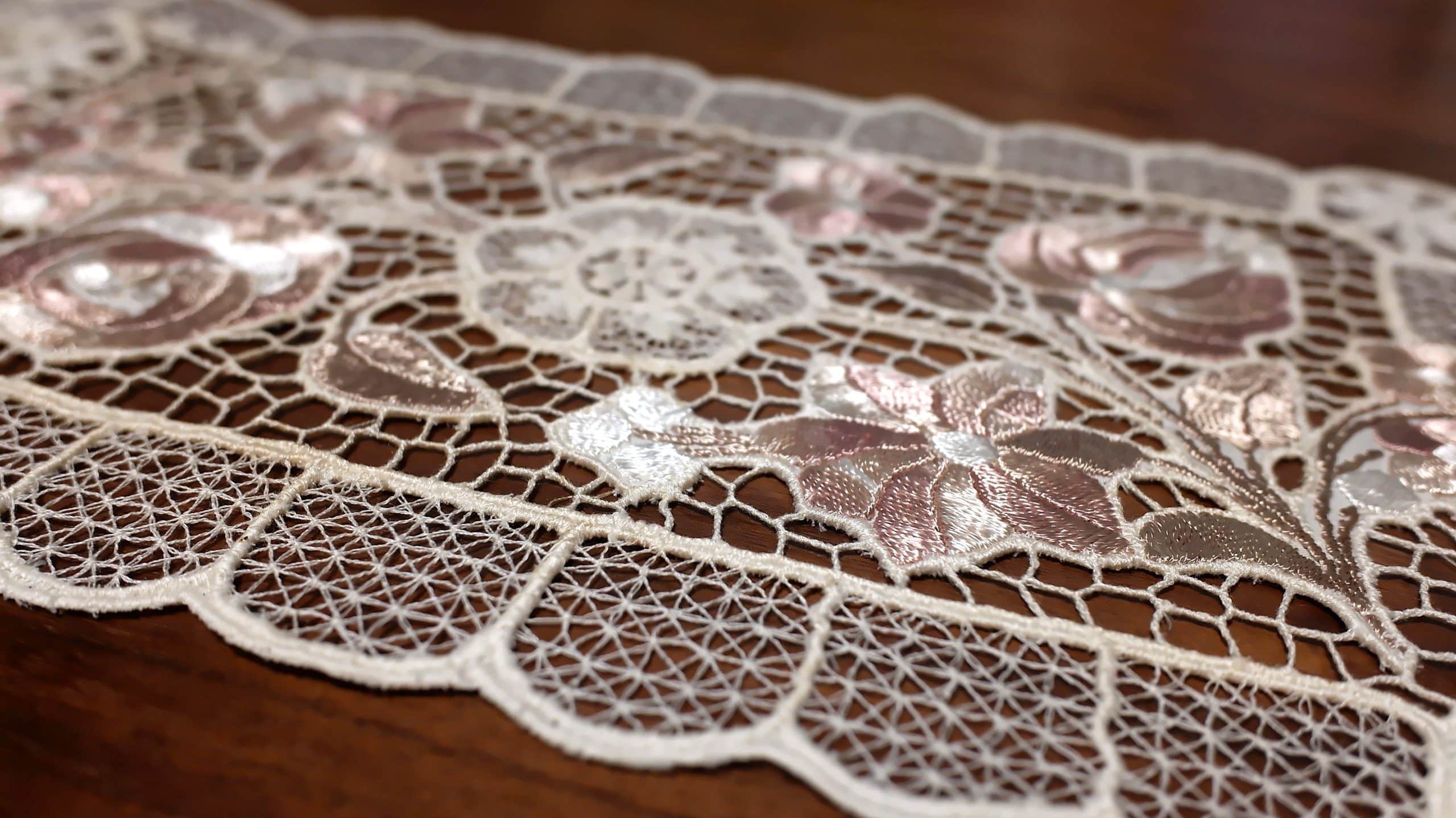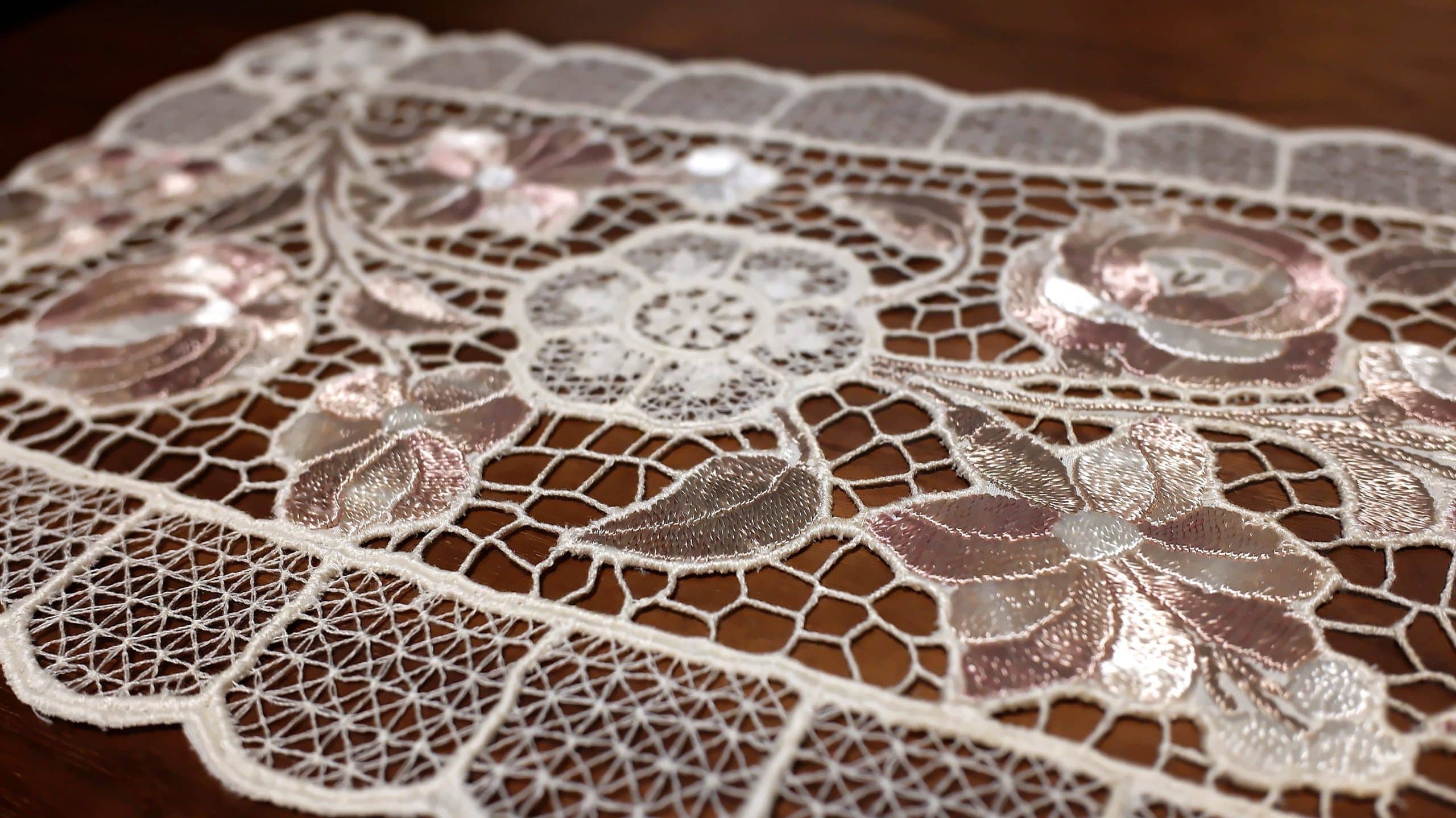 カロチャ刺繡の技法は手作業で、一針一針丹念に縫い進めることが重要とされています。基本的なステッチ技術は、サテンステッチやチェーンステッチが用いられ、布全体にわたって、繊細な膜様が広がります。
